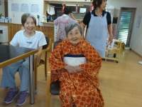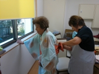 朝から浴衣の着付けの様子です。