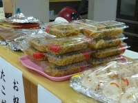 焼きそば、おにぎりと
