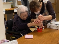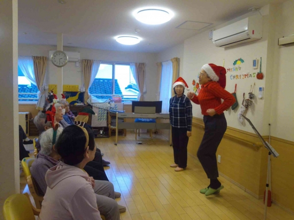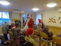 先日のクリスマス会の様子です。今年も音楽ボランティアの方とクリスマスソングを歌ったりサンタクロースからプレゼントを貰ったりと大いに盛り上がりました。また、クリスマスケーキのデコレーションは利用者様と職員の共同作業で作成しました。手間をかけた分美味しさも倍増!忘れられない一日となりました。